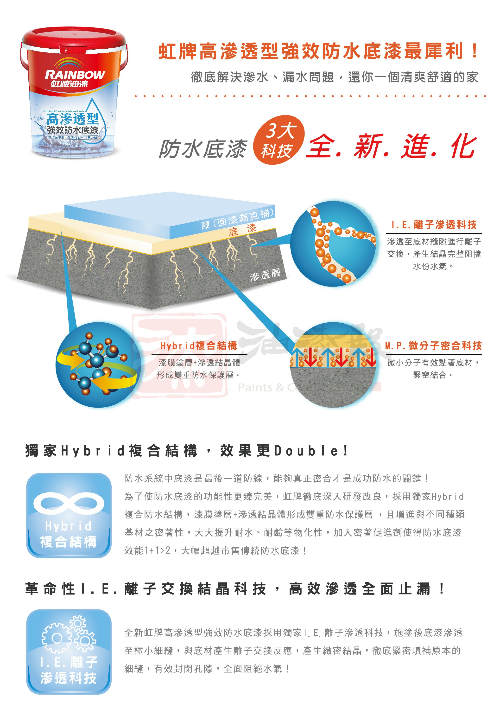 「底漆」能滲透基材、填補縫隙、增加後續面積附著能力,先上底漆才能達到最良好的效果。理論塗佈面積(1道):15 坪/加侖,建議塗布至少1道。
