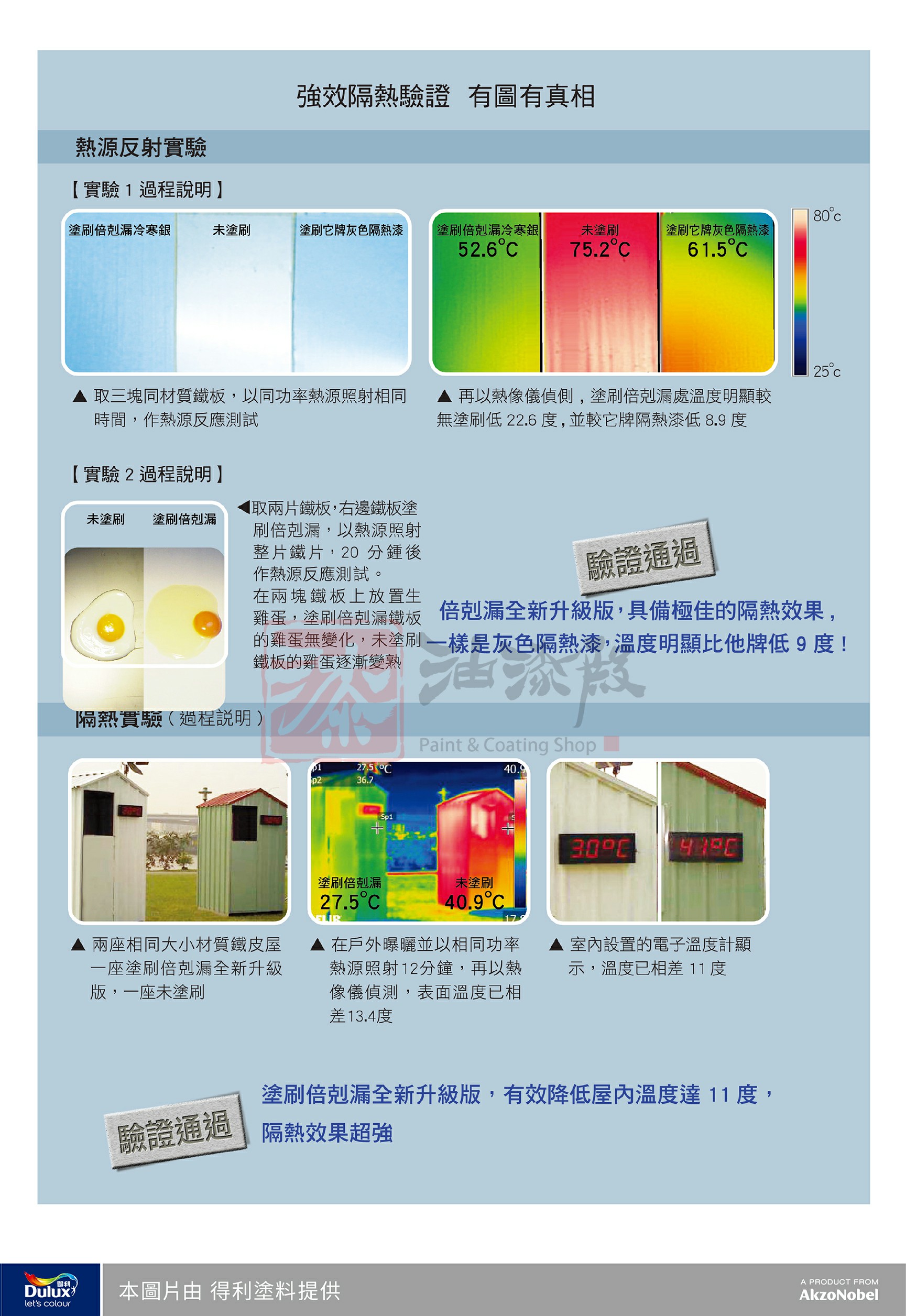 通過國立成功大學節能建材物性實驗證實,塗免倍剋漏能有效降低室內溫度達5.5度。