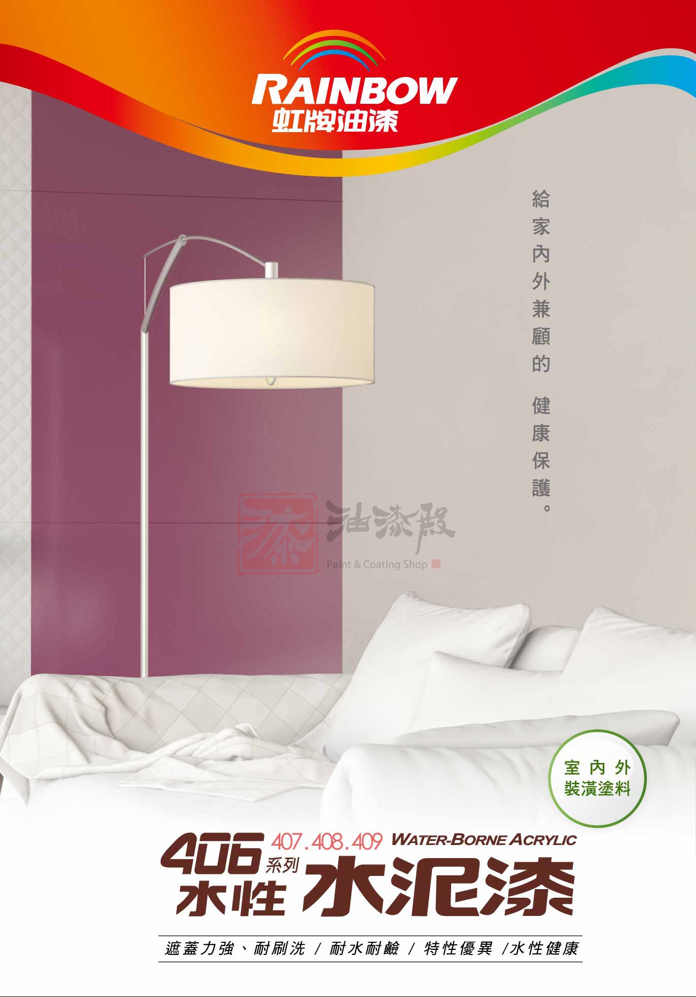 室內外通用水泥漆,有光表面不怕水、耐刷洗,建議塗布至少2道,1加侖可塗刷6.5坪(刷2道的面積)。
