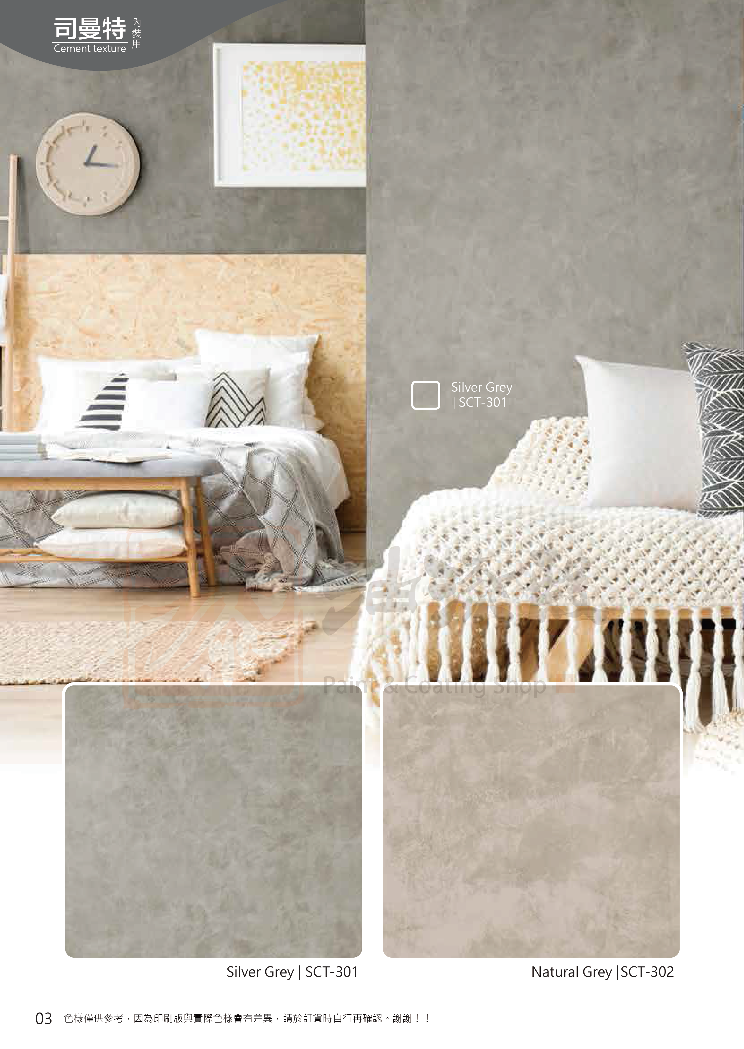 1組能施作1.8-2.1坪。司曼特灰泥塗材,能簡易的營造出水泥紋理及清水混凝土的質感。是居家、辦公室、商業空間,呈現工業風的最佳選擇。