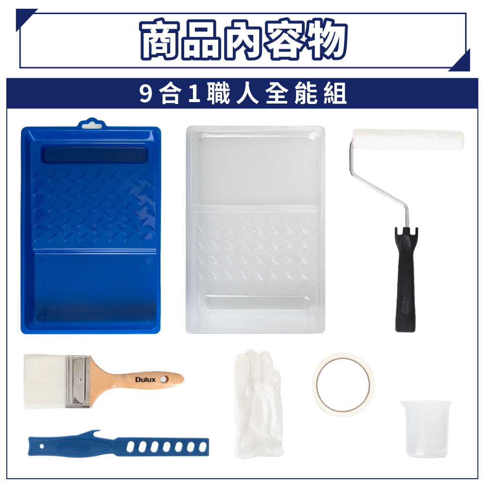 得利9合1輕鬆上手組丨滾輪丨油漆盤丨攪拌棒丨化纖刷丨量杯丨手套丨養生膠帶丨DIY工具組 ★工具一次購足 塗刷有一套,獨家刷毛材質 細膩又均勻。
