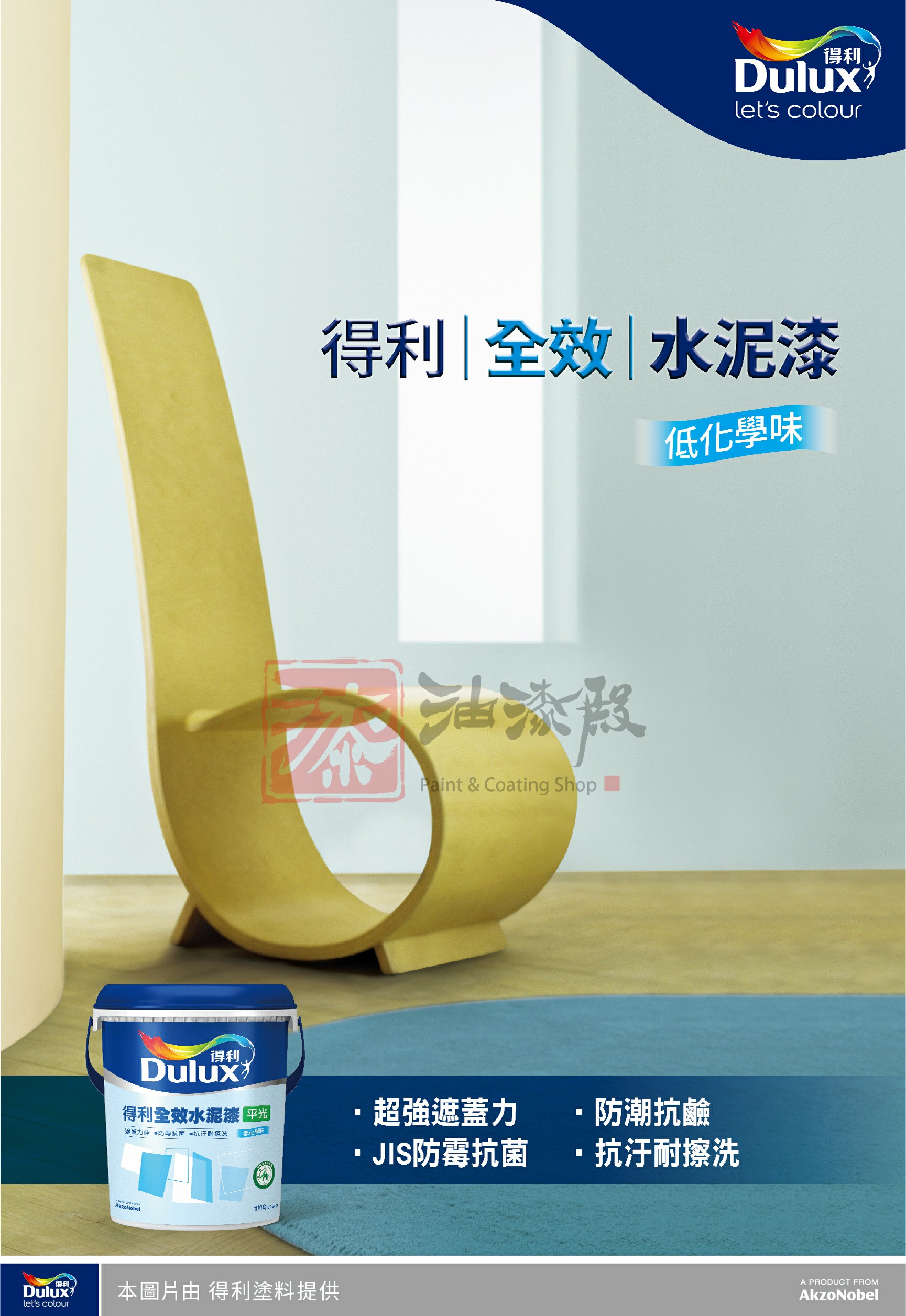 相較於樹脂含量高、質地細緻、功能多樣的乳膠漆來說,水泥漆屬於經濟實惠型的基本款塗料,水泥漆因粉料比例較高,一般都具有遮蓋力佳、容易塗刷等基本塗刷性能,適合用在大面積塗刷及不需特別注重牆面細緻質感的空間,如商業空間、店面、辦公室、樓梯間、地下室等。 得利全效水泥漆,新升級全效配方,保留原本的超強遮蓋力與優異塗刷性之外,更強化防霉、抗菌、防潮、抗鹼、耐擦洗等功能,除現成漆色外更有2079色電腦調色漆可供選擇,符合專業塗刷與日常使用的需求,無論是商業空間或一般住家的大面積塗刷,得利全效水泥漆都是最超值的選擇。