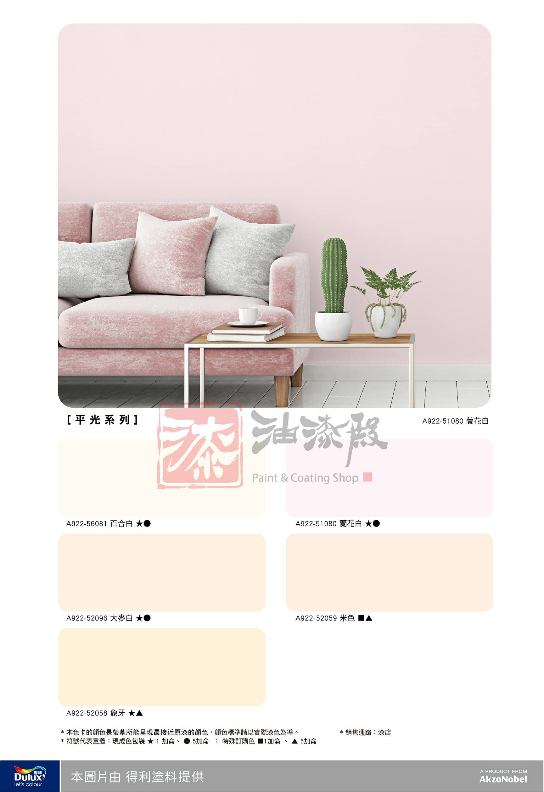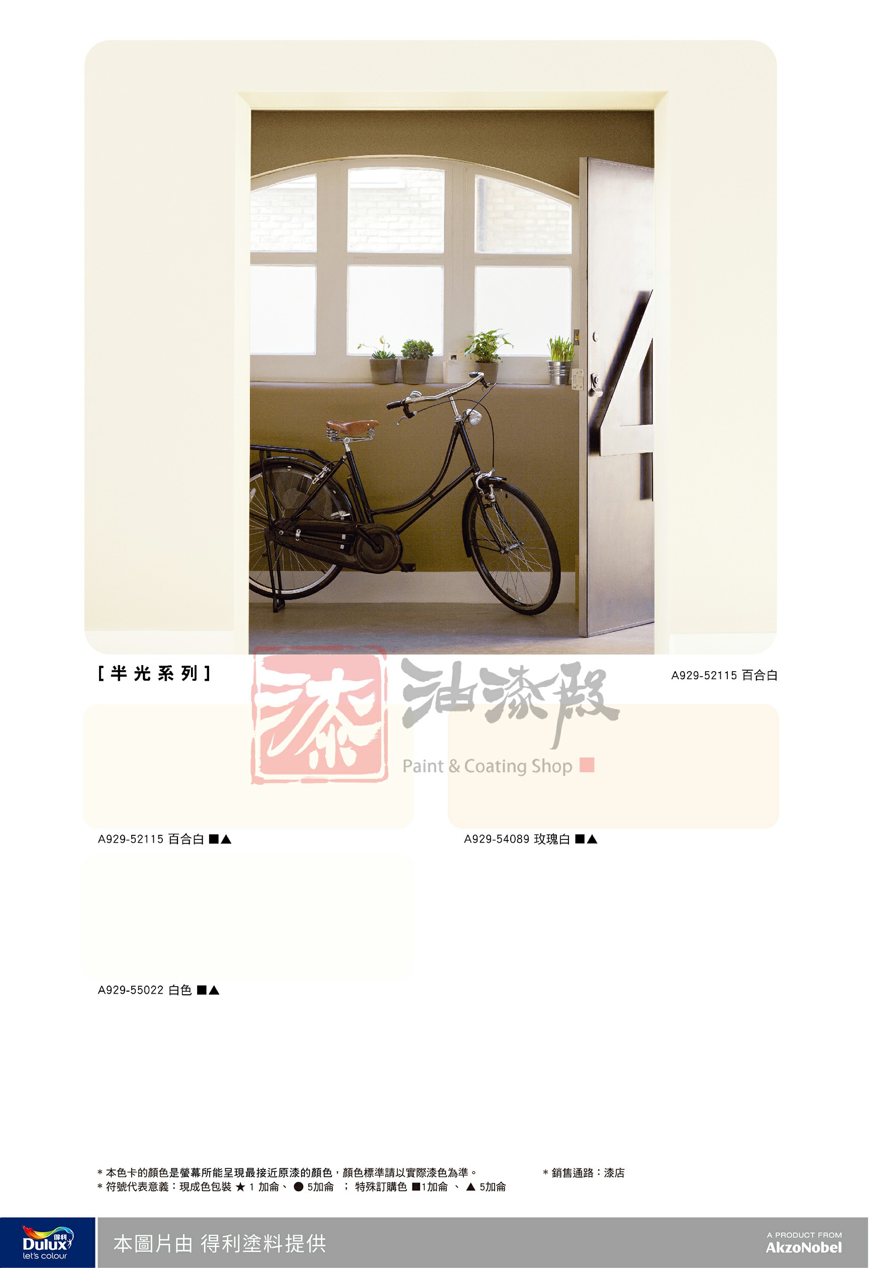 採用底漆+面漆的完整塗刷體系,可以保護底材、增加面漆的附著性及讓色彩更飽和 一般牆面: 得利全效底漆(1道)+得利面漆(2道以上) 吐鹼、粉化、壁癌等問題牆面:得利防壁癌底漆(1道)+得利面漆(2道以上) |
