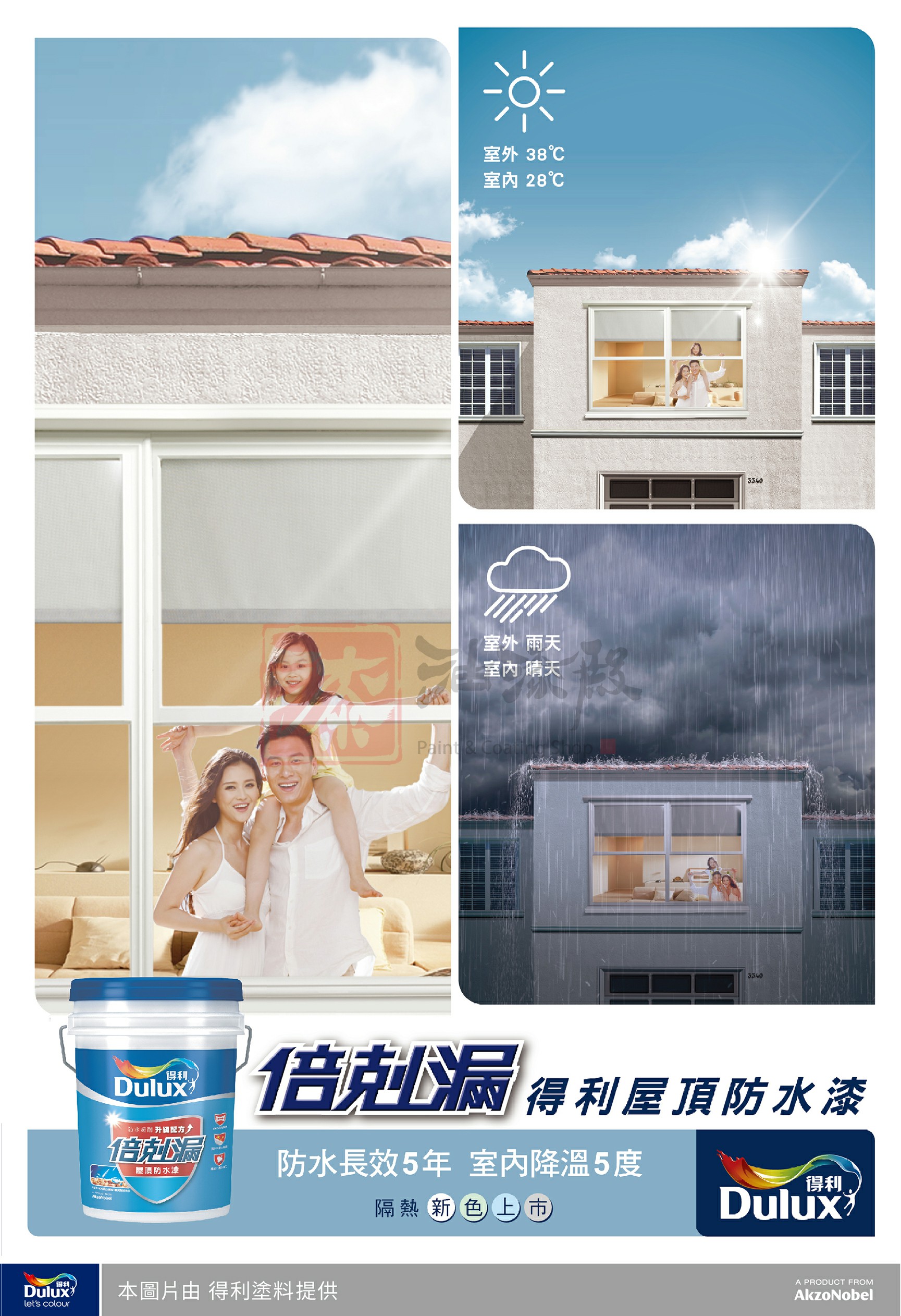 想要一次搞定防水和隔熱,就使用CP值最高的得利倍剋漏,防水長效5年,室內降溫5度。