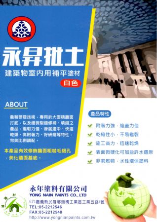 水泥牆面、木材製品,打底修飾及裂縫、小孔之修補及矽酸鈣板、石膏板、三夾板、各式防火板等打底及修補。